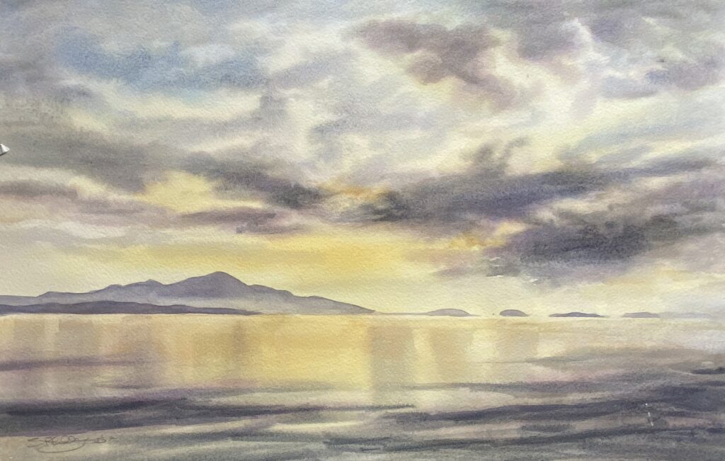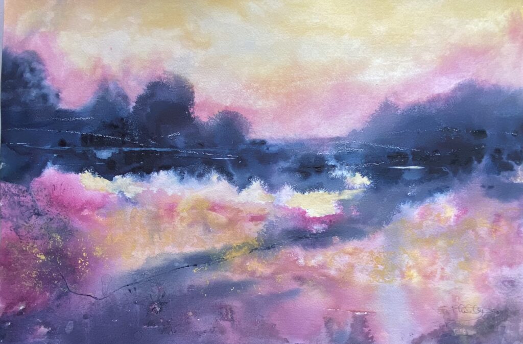 There are moments in nature that last only seconds — a break in the clouds, a shaft of sunlight across a field, a sudden change in colour on distant hills. For Sheena Phillips, these fleeting moments are everything. They are the spark that begins each painting and the reason her watercolours feel so alive.